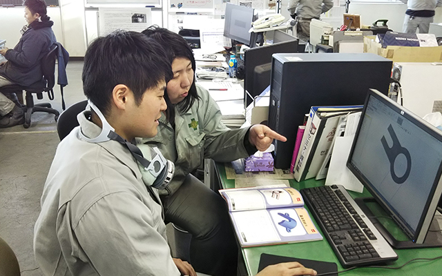 - 入社1年目は型の検査。2年目には3Dモデル作成や型方案の作成、途中結婚・出産・育休を経て、金型製作にも携わっています。